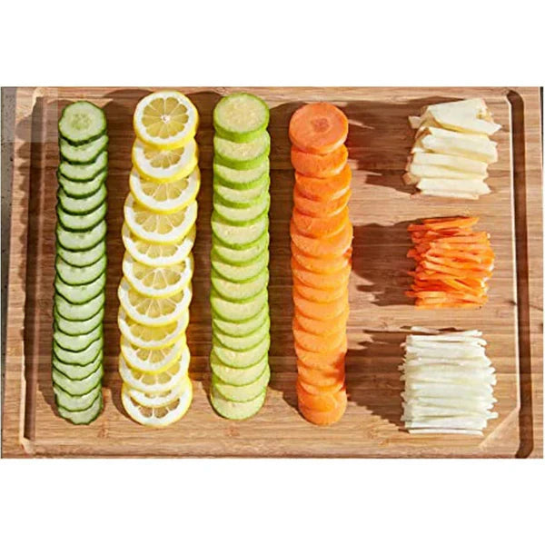🥔Safely slice hands-free for mandoline cuts; use a Flexible Slice blade for easy French fries, potato sticks, rice noodles, and cutting produce.
